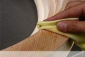 Entfernen Sie immer wieder den Schleifstaub von Ihrem Werkstück, dann wird die Oberfläche besonders sauber. Ideal dafür geeignet: Honiggetränkte Tücher, die es im Baumarkt und Fachhandel zu kaufen gibt. |