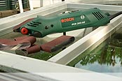 Gesammelten Holzstaub können Sie mit einem flüssigen Bindemittel auf Zellulosebasis mischen und als Holzkitt (flüssiges Holz) weiterverwenden. Damit lassen sich zum Beispiel Dellen oder Kerben in Möbelstücken ausbessern. Wenn Sie das Möbelstück später nicht lackieren wollen und das Holz sichtbar bleibt, ist selbstgemischter Holzkitt ideal, weil er die selbe Farbe wie das Holz hat. Nach dem Aushärten des Kitts sollten Sie die Stelle sorgfältig glatt schleifen. |