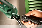 Med luftslangen kan du koble en BOSCH universalstøvsuger eller en vanlig støvsuger til din BOSCH deltasliper. På den måten oppnår du en ren arbeidsplass og en luft som ikke er full av slipestøv. Sugeslangen fås i to størrelser og to lengder. Til den største med en diameter på 35 mm må du dessuten bruke en adapter. |