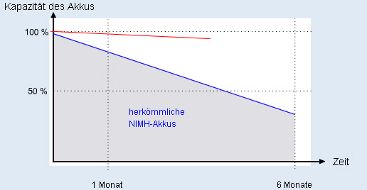 Voll geladene NiMH Akkus verlieren nach ca. 4 Monaten des Nicht Gebrauchs bereits 50% Ihrer