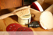 First of all, clean the surface using warm water and a coarse scrubbing brush. Always scrub in the direction of the grain. For wax, glue or resin stains, dissolve some household soap in hot water. Wipe off the soap residue on the furniture using clean water. |