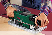 Wanneer u reeds van tevoren weet, hoeveel materiaal u wilt afschuren, kunt u uw BOSCH bandschuurmachine in een schuurraam spannen. Zo schuurt u ook werkelijk slechts zoveel materiaal weg als u wilt.