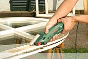 Druk met de machine niet al te hard op het werkstuk. Het eigen gewicht van de machine is meestal al voldoende. |