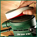 Legg adapteren som et mykt mellomlag på BOSCH eksentersliperens slipetallerken. Fest et slipepapir med korn 60 på slipetallerkenen, og glattslip overflaten på møbelet. Ikke trykk eksentersliperen for hardt mot treet, det kan forårsake fordypninger og sprekker. Etterslip deretter med kornstørrelsene 120 og 240. Fjern til slutt slipestøvet grundig med en børste. |