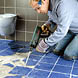 Когда вся керамическая плитка будет удалена, удалите неровности с помощью шлифмашины по бетону, если поверхность не совсем гладкая. |