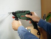 Если при работе сверло немного сместится, отверстие не будет просверлено прямо. Поэтому во время сверления Вы должны постоянно следить за тем, чтобы сверло входило строго