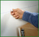 Вставьте дюбели в просверленные отверстия, при этом можно пару раз осторожно ударить молотком. Это поможет дюбелю войти правильно. |