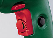 При сверлении в чувствительных материалах лучше ограничить максимальную скорость. Для этого многие главные выключатели имеют на рычажке колесико. Это колесико не позволяет Вам