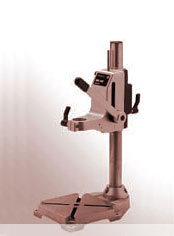 Дрель ударного действия можно закрепить на стойке, которая жестко крепится к верстаку. Стойка сверлильного станка поможет Вам точно сверлить обрабатываемую деталь, сверло при этом
